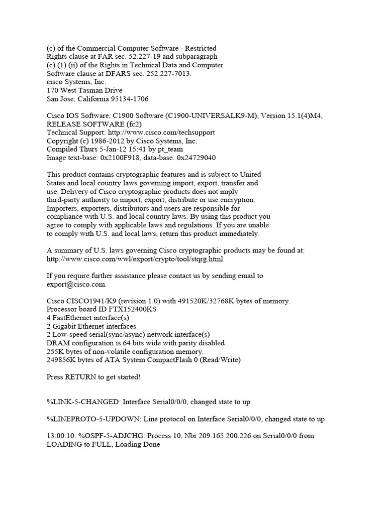 13:00:10: %OSPF-5-ADJCHG: Process 10, Nbr 209.165.200.226 on Serial0/0/0 from