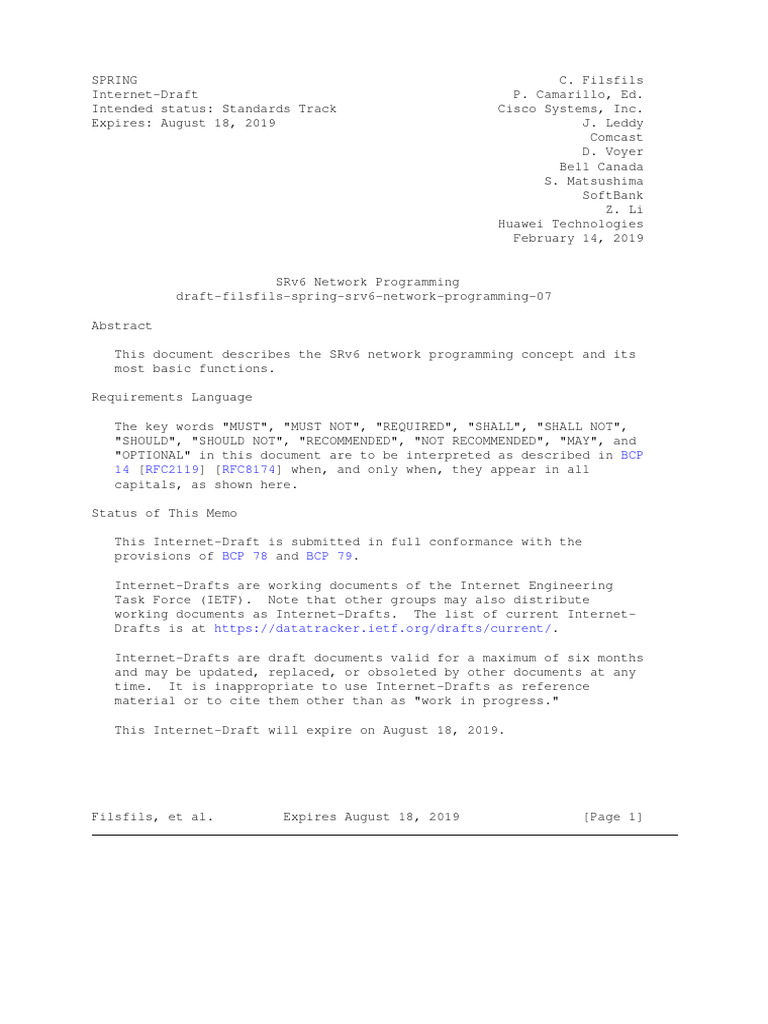 Filsfils, et al. Expires August 18, 2019 [Page 2]