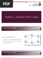 1. You connect to the ISPs POP using a telephone number that your ISP provides. A point-ofpresence (POP) is a collection of modems and other equipment in a local area. 2. ISPs connect to a backbone to access remote web servers. Backbones are high-speed, high capacity transmission lines that use newest communications technology. TCP/IP, the Internet Society, and ICANN Protocol is a set of conventions that govern the format of data transmitted electronically. They ensure that all data is exchanged in a consistent format. TCP/IP is a protocol that enables all computers to interpret and use data transmitted over the internet. ISOC (Internet Society) provides leadership in addressing issues that confront the future of the internet. ICANN was established to regulate human-friendly internet domain names 2.4 Sending & Receiving Email Incoming email is stored on a mailbox on the server. Outgoing email is sent to a Simple Mail Transfer Protocol (SMTP) server. Email Software & Carriers Get an email program (browser) as part of other computer software Get email software as part of your ISP package Get free email services Buy email software Email Addresses Joe_Black@earthlink.net.us User name/ID : Joe_Black Domain name : earthlink Top-level domain : .net Two-letter country extension : .us