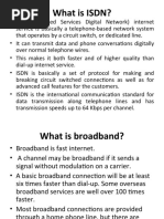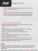 Bandwidth = an expression of how much data can be sent through a communications channel in a given amount of time Baseband = Allows only one signal at a time Broadband = Several signals can be sent at once Download = to transmit data from a remote computer to a local computer Upload = to transmit data from a local computer to a remote computer Telephone (Dial-Up) Modem: Low Speed but Inexpensive & Widely Available Modem = a device that sends and receives data over telephone lines to and from computers There are two types of modems = internal and external High-Speed Phone Lines: More Expensive but Available in Most Cities ISDN = hardware and software that allows voice, video, and data to be communicated over traditional copper-wire telephone lines DSL = uses regular phone lines like ISDN, a DSL modem, and special technology to transmit data in megabits per second. T1 = a traditional trunk line that carries 24 normal telephone circuits and has a transmission rate of 1.5 Mbps. Wireless Systems: Satellite & Other Through-the-Air Connections Communications satellite = a space station that transmits radio waves called microwaves from earth-based stations.