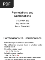 • The number of ways to order a single poker hand is P(5,5) = 5! = 120