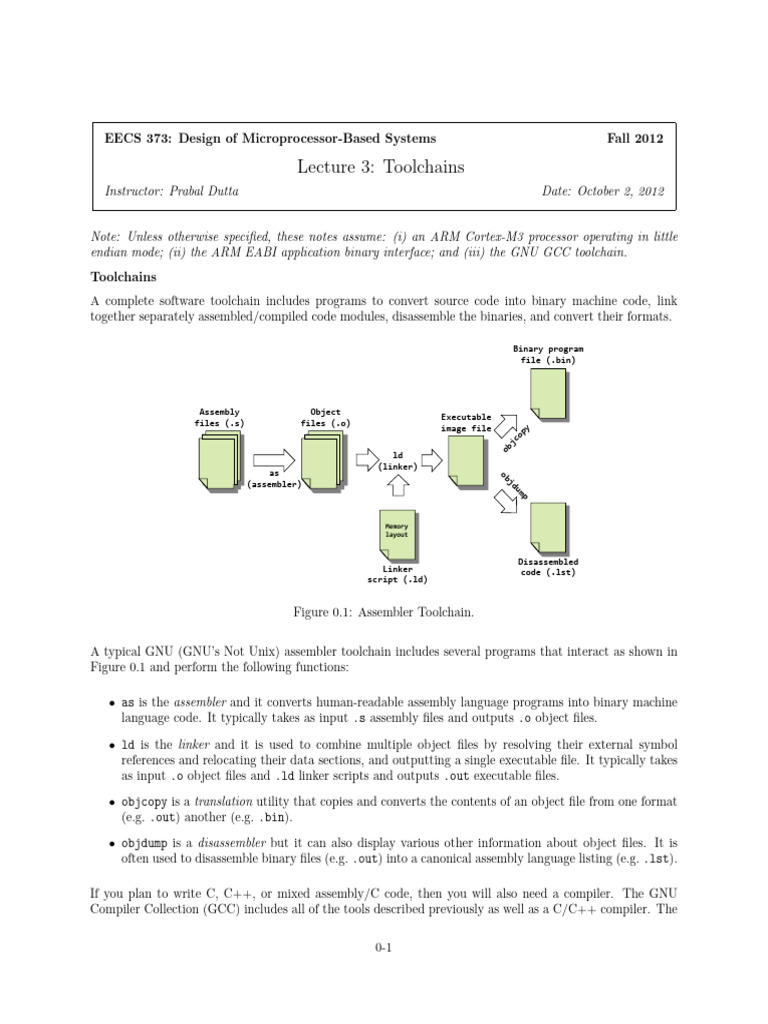 A typical GNU (GNU’s Not Unix) assembler toolchain includes several programs that interact as shown in