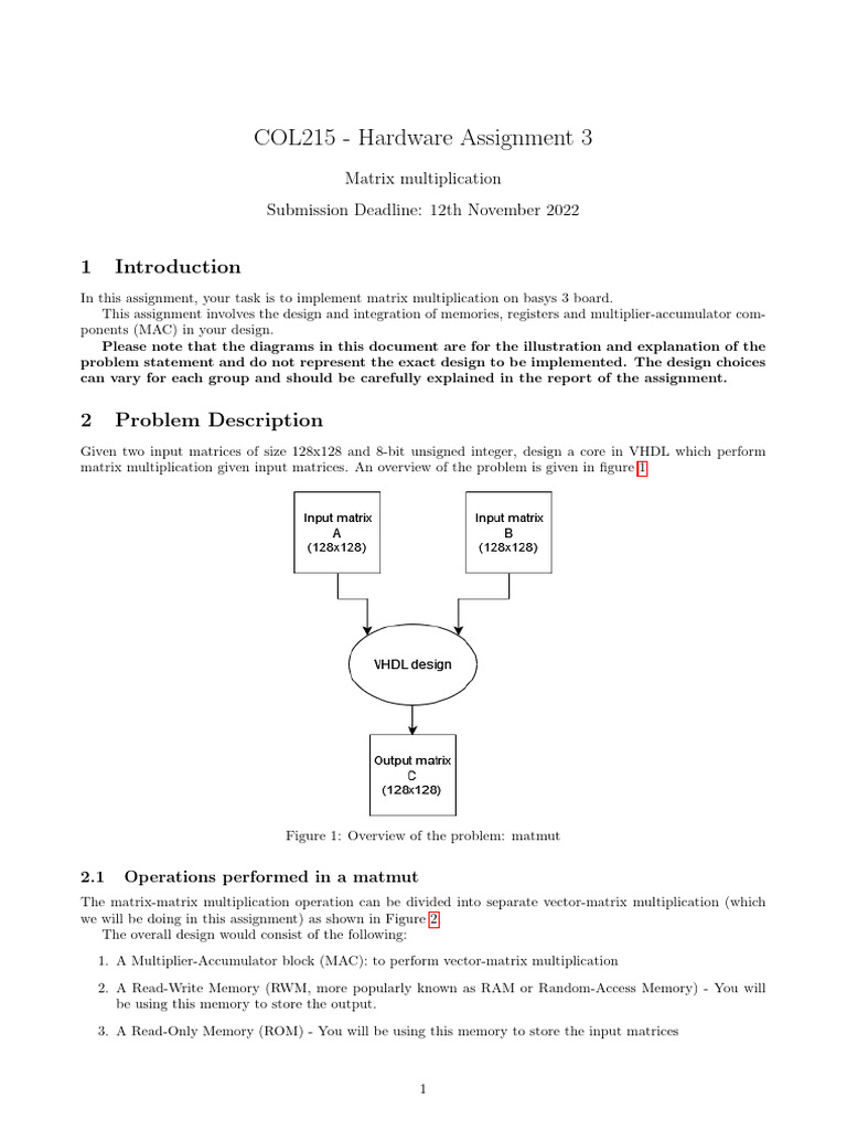 This assignment involves the design and integration of memories, registers and multiplier-accumulator com-