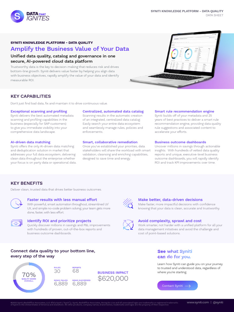 SYNITI KNOWLEDGE PLATFORM - DATA QUALITY