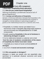 from noise etc. Since the accommodation product cannot be examined before a guest commits his/her self, a guest relies upon the front office staff to be able to describe the product accurately. It is therefore important for the front office staff to have knowledge of what is included in the accommodation of the hotel he/she is paying for. This knowledge will increase sales and productivity for the establishment. 2. Layout of the hotel:- this is also important in product knowledge of front office operation. A good receptionist should know the layout of the establishment for good impression of the guest. The guest may ask the following questions there is the restaurant, or lounge, or bar? Or what are the bar hours, when is the pool open, how early does breakfast start for those guests checking out early. What type of facilities is available? 3. Knowing all types of menus- Knowing all types of menus is very important. The staff must know all types of menus offered by the restaurant and the times of services. For example, there are mainly two types The Table Dhorte and ala cante. 4. General information:- staffs at the front office must also acquire general information about lounges, bars, hall, swimming pool etc. all being part product knowledge a receptionist must have for smooth running of the establishment, high project, and high patronage of guest. 5. Equipment available:- is also related to product knowledge in front office operation for example, equipments available for conferences, special functions, entertainments and programmes offered by the hotel. Also the size, and types of fixtures and furnishings are also important for the front office to have knowledge of since it is the focal point and nerve centre of the hotel.