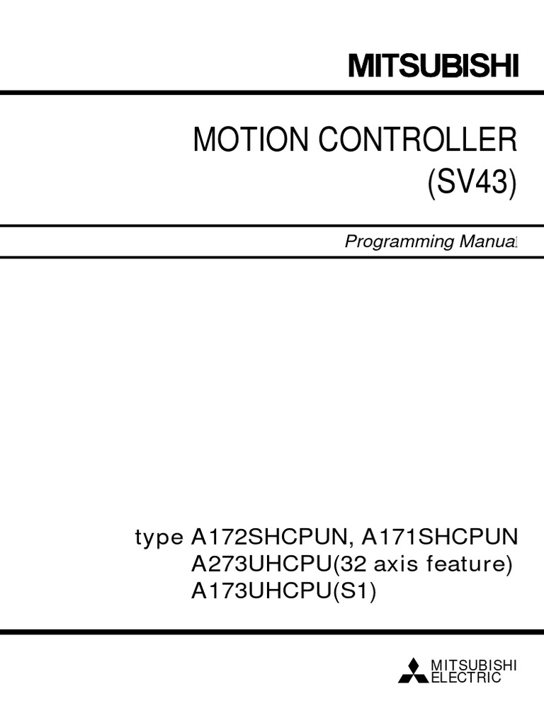 MOTION CONTROLLER (SV43) Programming Manuai,