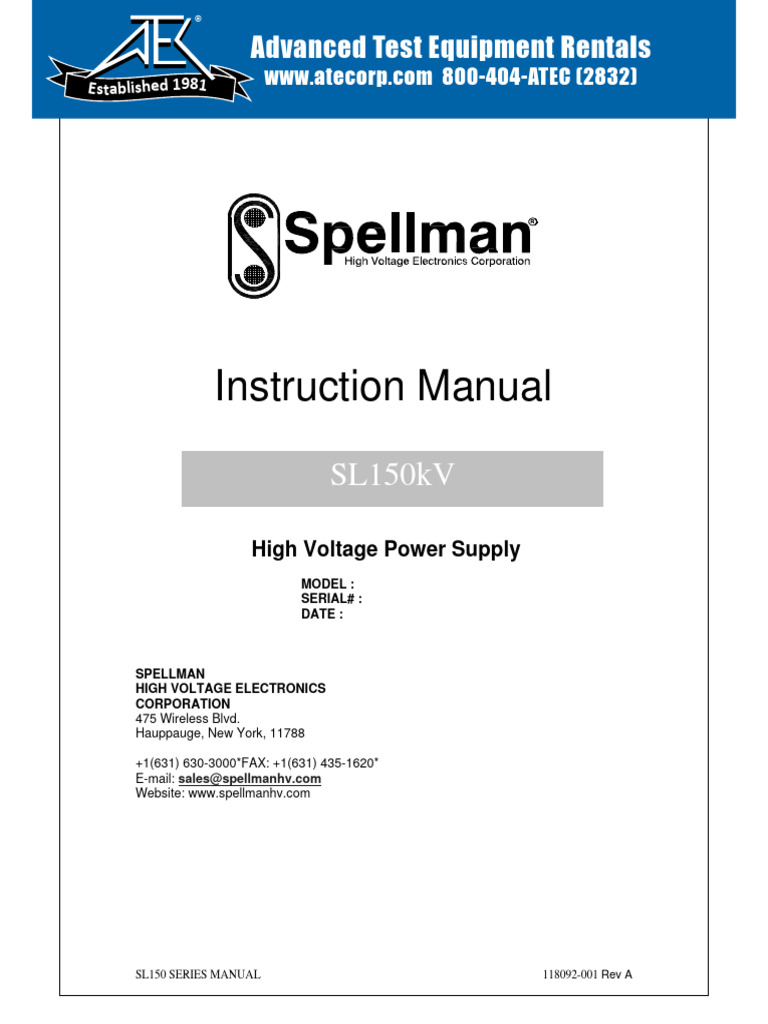 When you call, please state the model and serial numbers, Spellman High Voltage Electronics Corp.