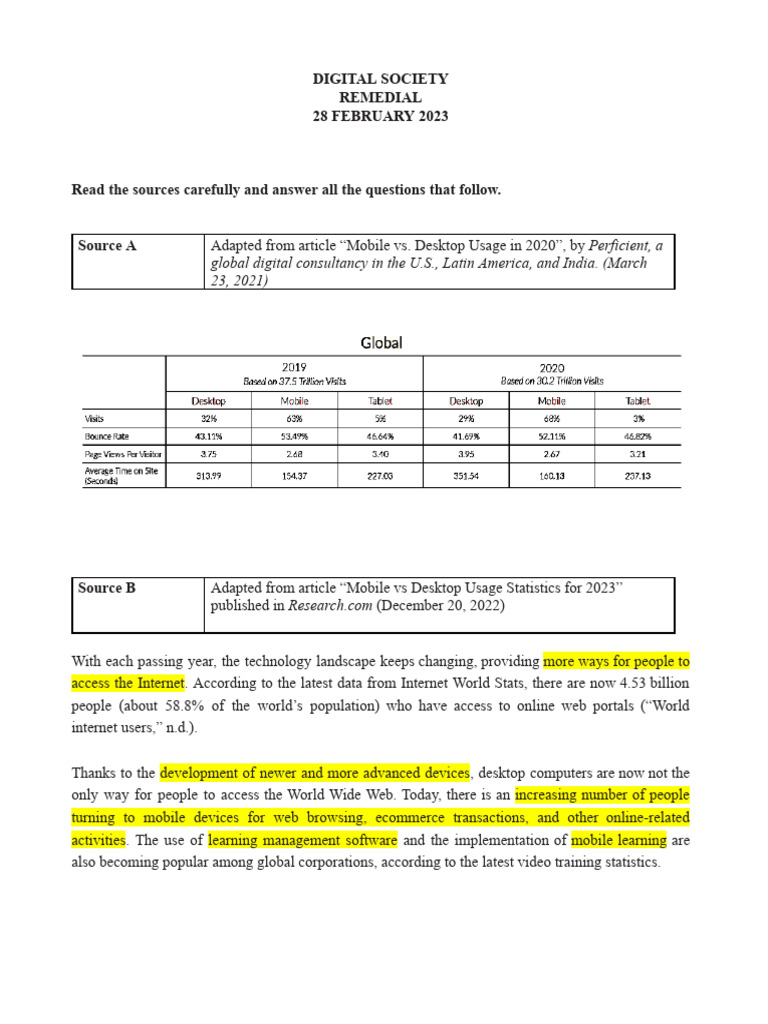 Source B Adapted from article “Mobile vs Desktop Usage Statistics for 2023”