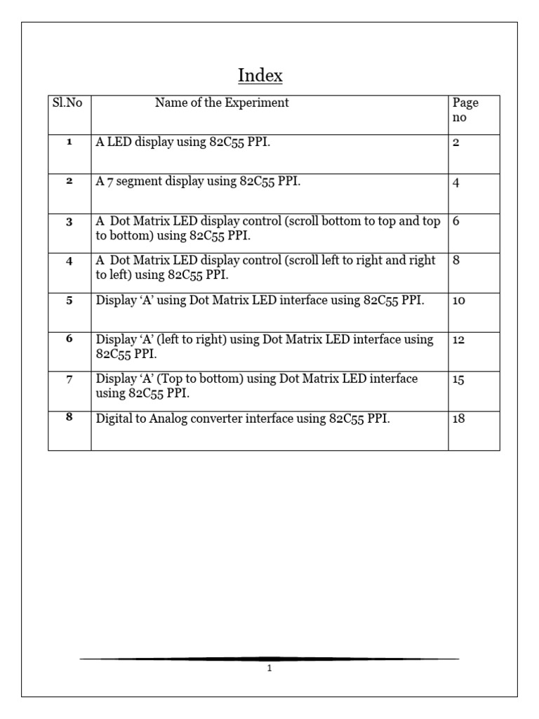 5 Display ‘A’ using Dot Matrix LED interface using 82C55 PPI. 10