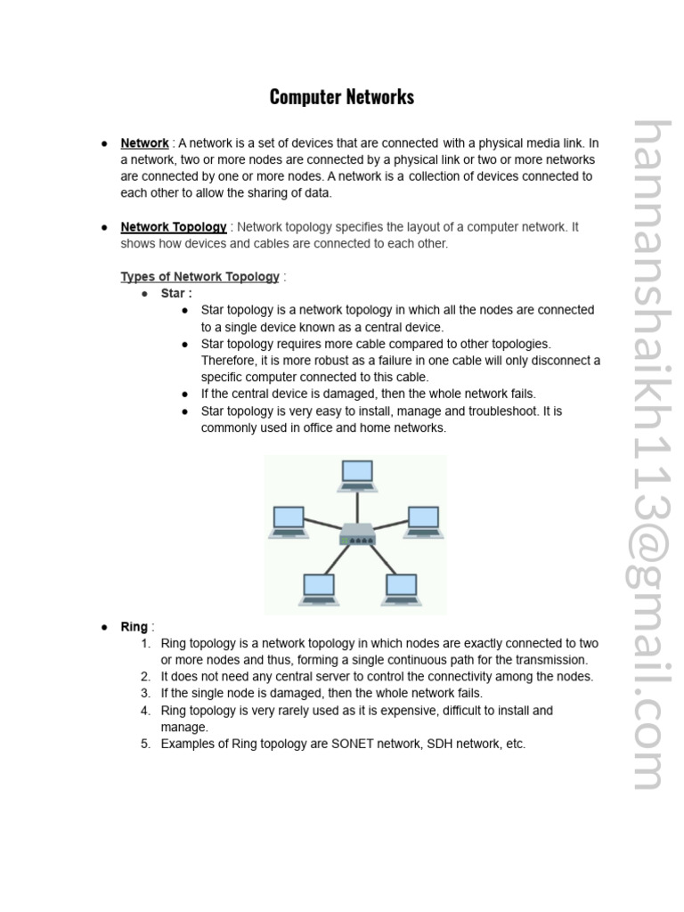 5. Examples of Ring topology are SONET network, SDH network, etc.