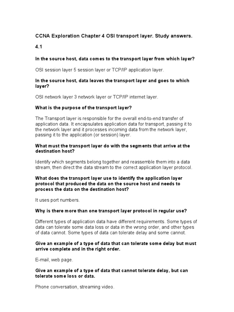 CCNA Exploration Chapter 4 OSI transport layer. Study answers. 4.