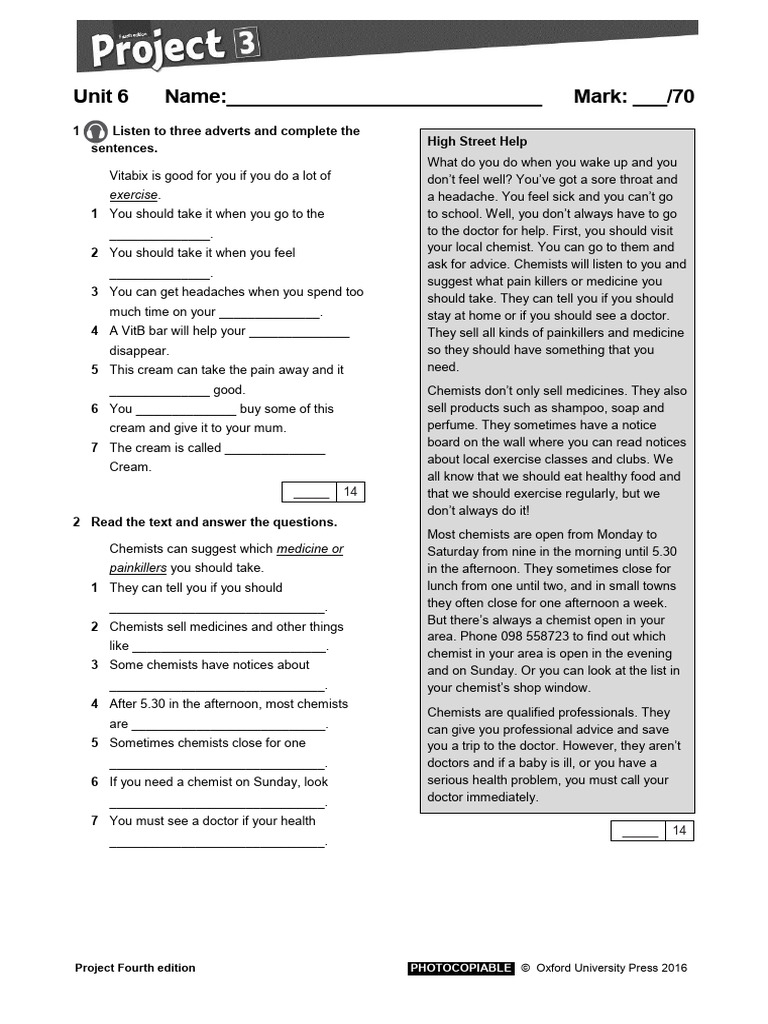 Project Fourth edition PHOTOCOPIABLE © Oxford University Press 2016