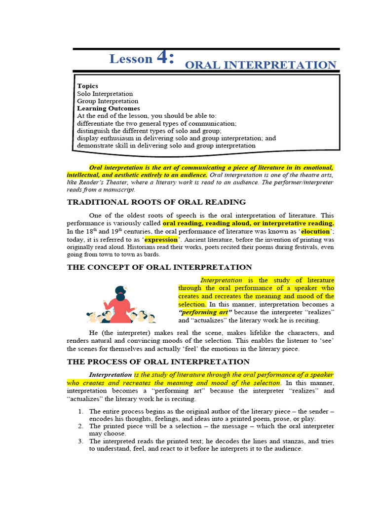 provided by the lines and passages spoken by the reader, accompanied by his voice quality, pitch levels,