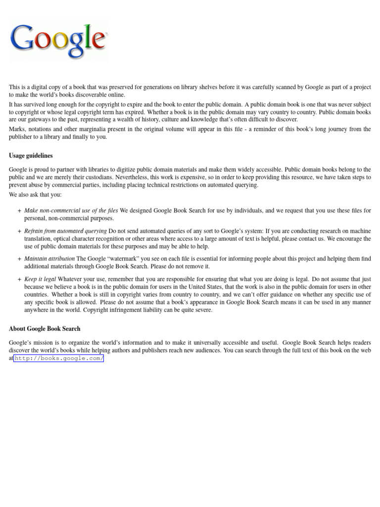 Google is proud to partner with libraries to digitize public domain materials and make them widely accessible. Public domain books belong to the