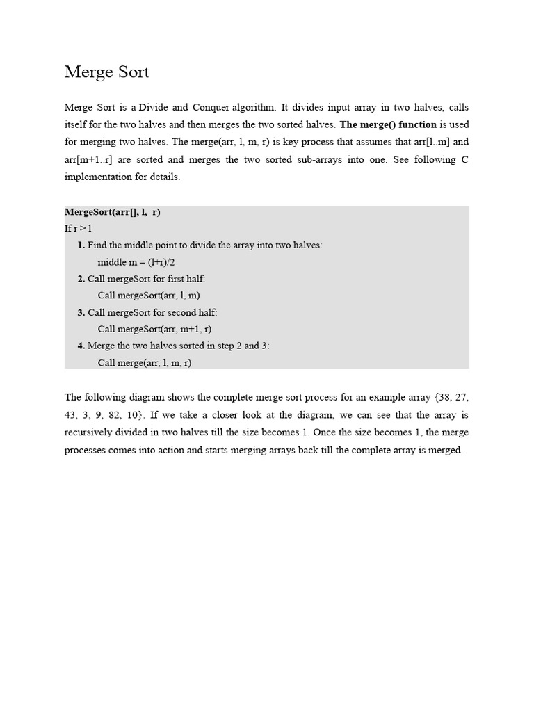 The following diagram shows the complete merge sort process for an example array {38, 27,