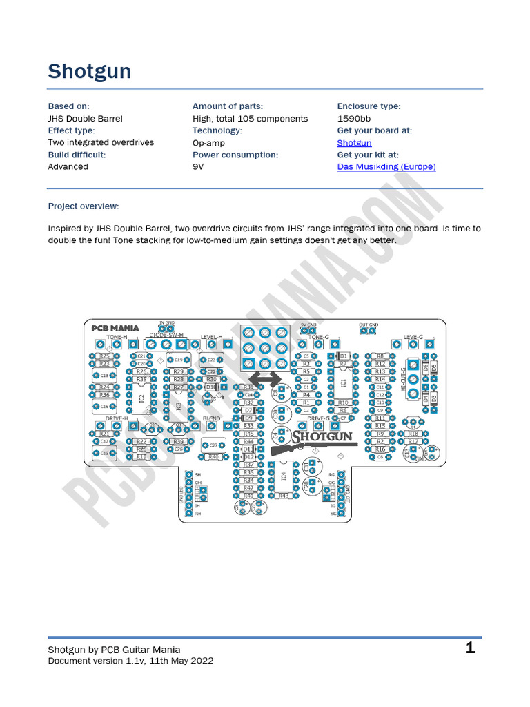 Inspired by JHS Double Barrel, two overdrive circuits from JHS’ range integrated into one board. Is time to