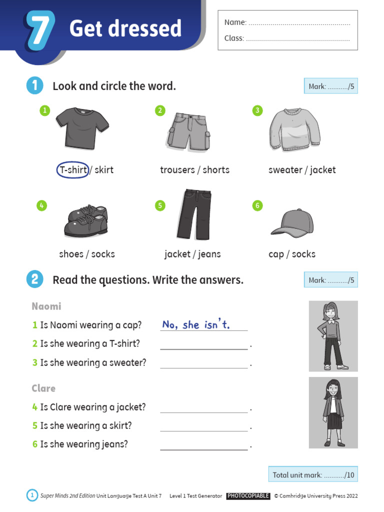 1 Super Minds 2nd Edition Unit Language Test A Unit 7 Level 1 Test Generator PHOTOCOPIABLE © Cambridge University Press 2022