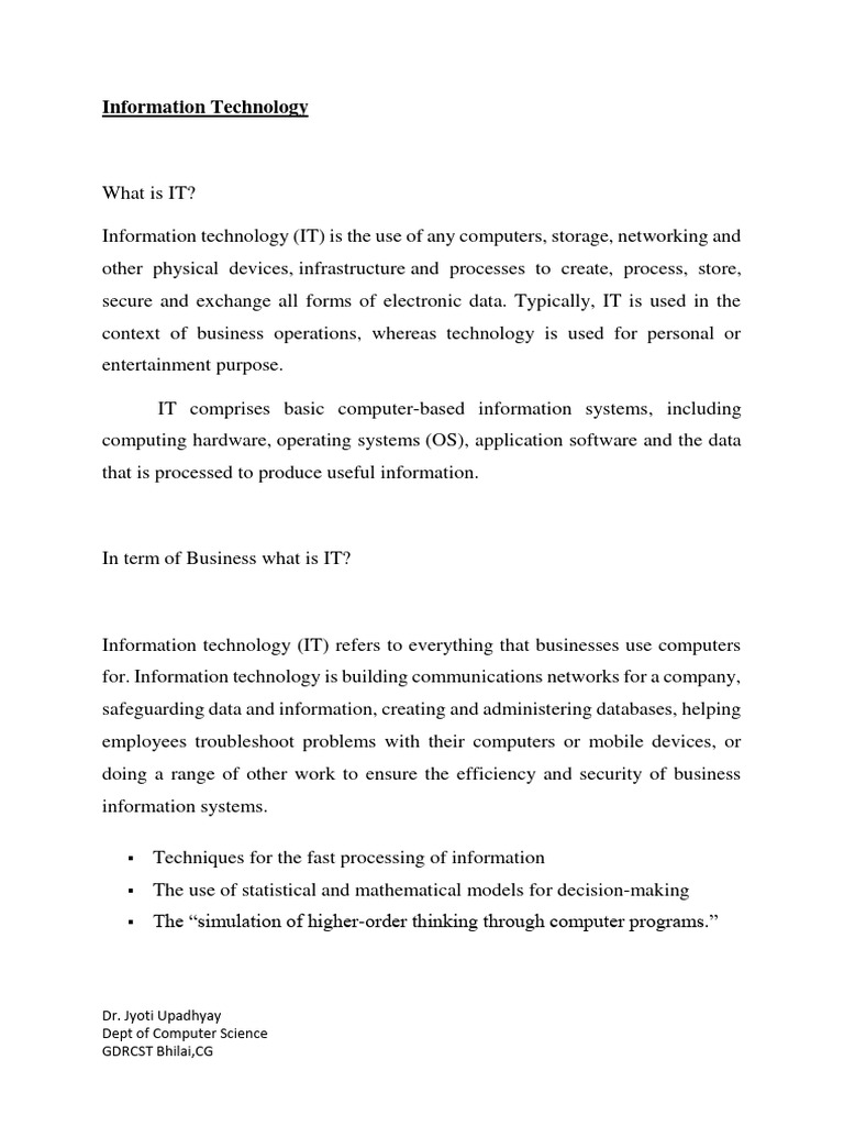 secure and exchange all forms of electronic data. Typically, IT is used in the