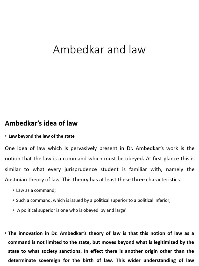 • The innovation in Dr. Ambedkar’s theory of law is that this notion of law as a
