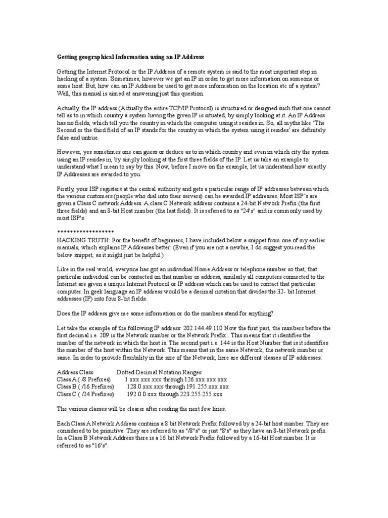 tell as to in which country a system having the given IP is situated, by simply looking at it. An IP Address