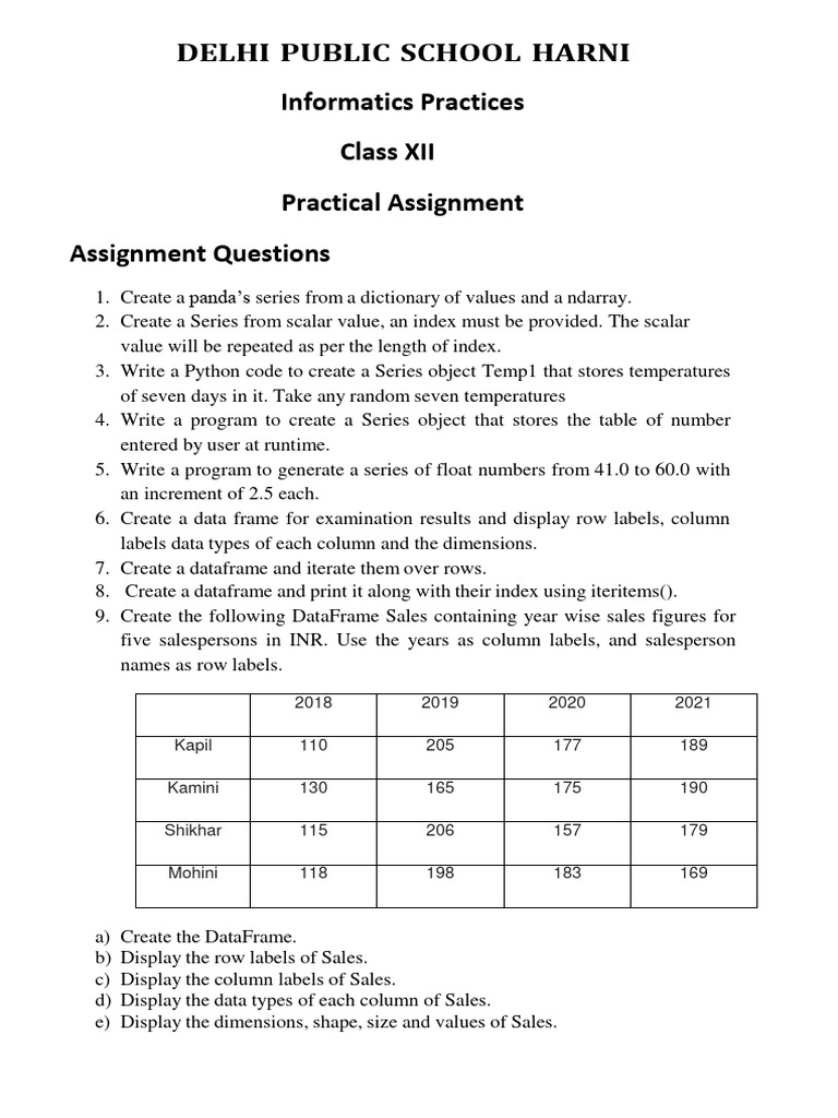 9. Create the following DataFrame Sales containing year wise sales figures for