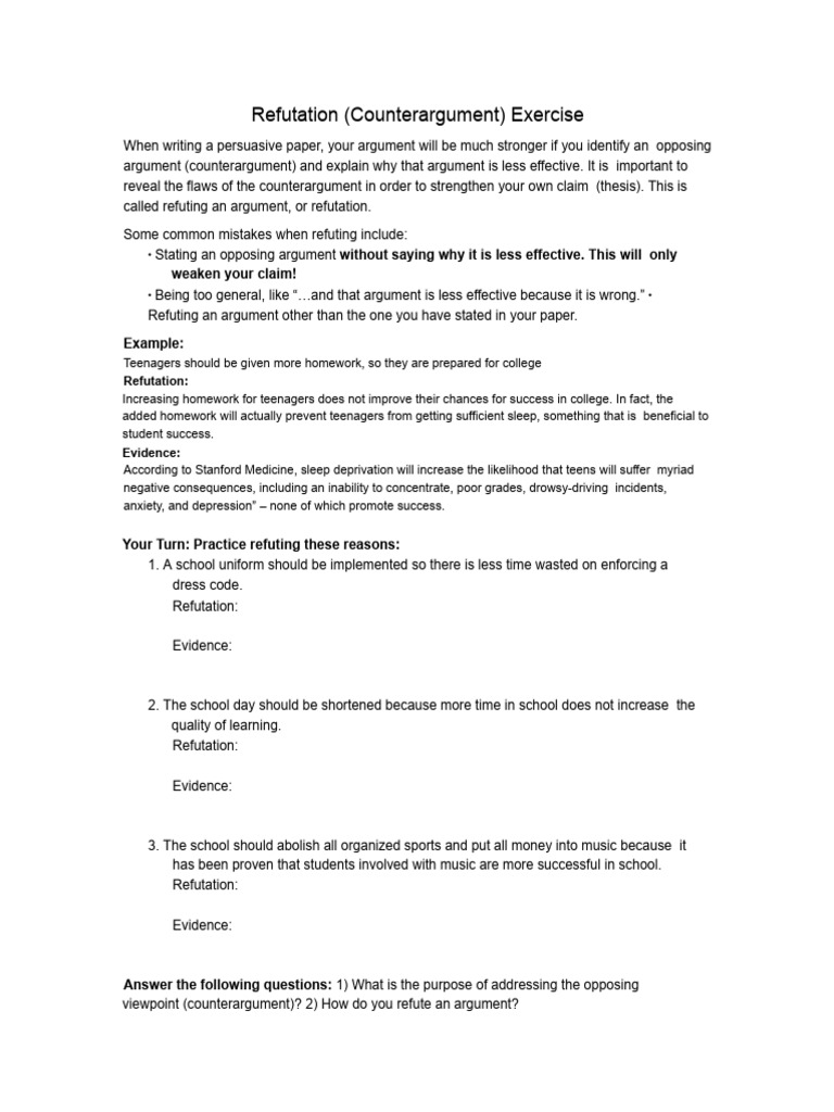 viewpoint (counterargument)? 2) How do you refute an argument?