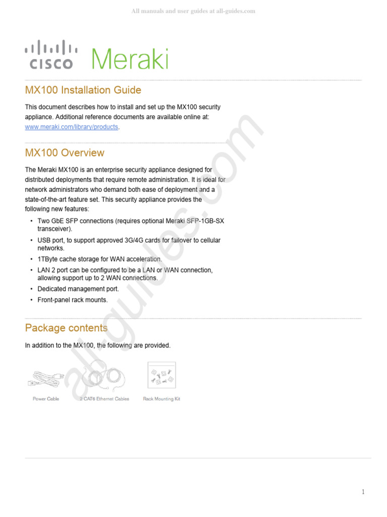 • Two GbE SFP connections (requires optional Meraki SFP-1GB-SX