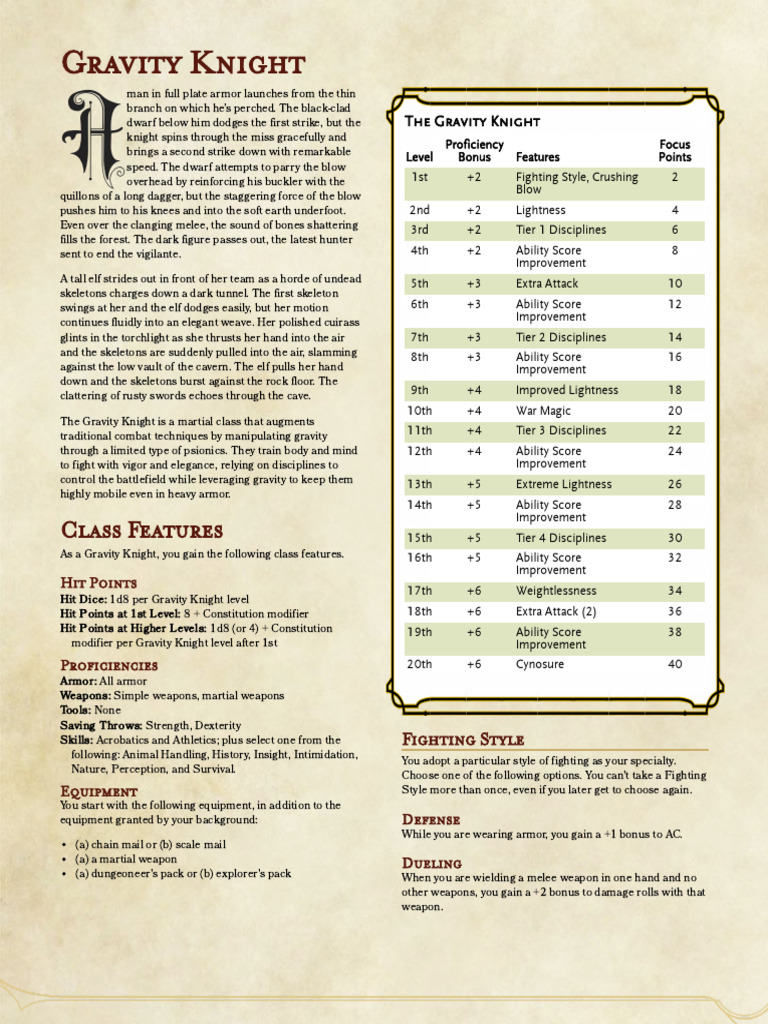 traditional combat techniques by manipulating gravity 11th +4 Tier 3 Disciplines 22