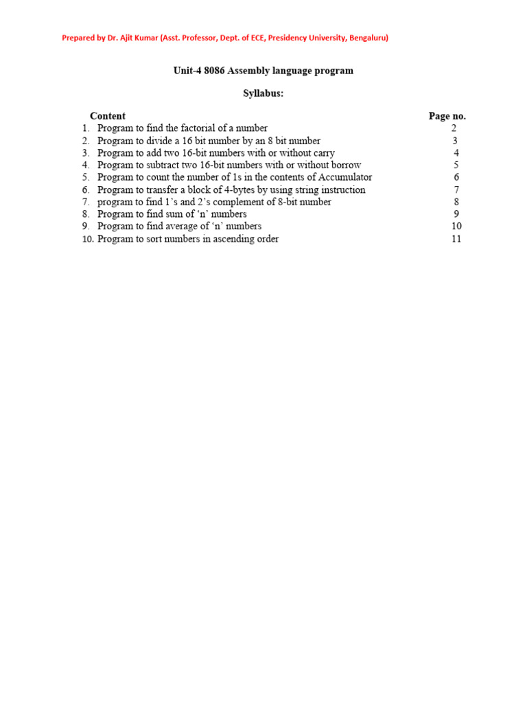 2. Program to divide a 16 bit number by an 8 bit number 3