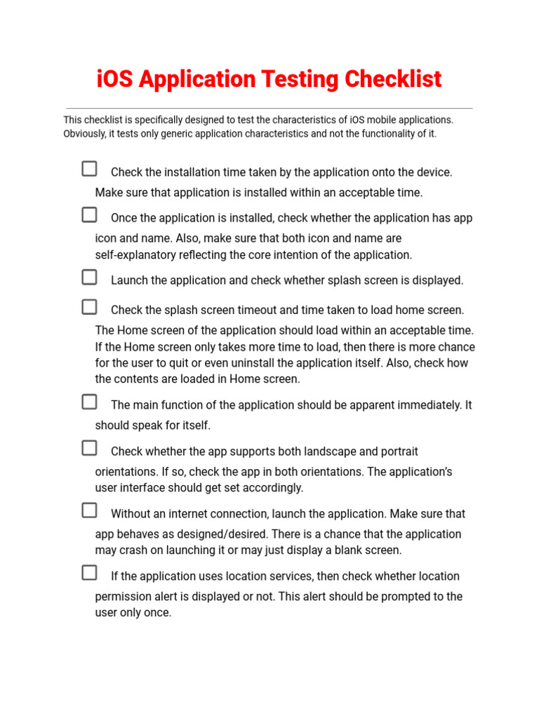 This checklist is specifically designed to test the characteristics of iOS mobile applications.