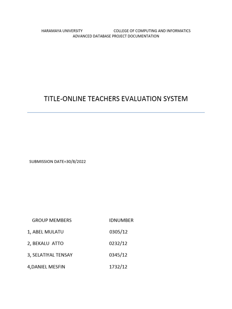 TITLE-ONLINE TEACHERS EVALUATION SYSTEM