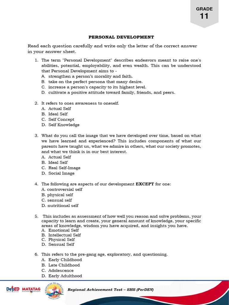 1. The term "Personal Development" describes endeavors meant to raise one's