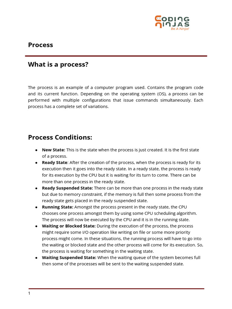 and its current function. Depending on the operating system (OS), a process can be