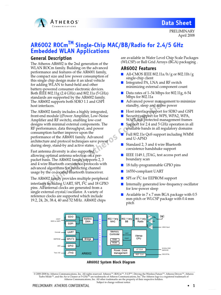 PRELIMINARY: ATHEROS CONFIDENTIAL • 1