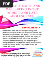 Week 1: MENTAL HEALTH AND WELL-BEING IN THE MIDDLE AND LATE ADOLESCENCE