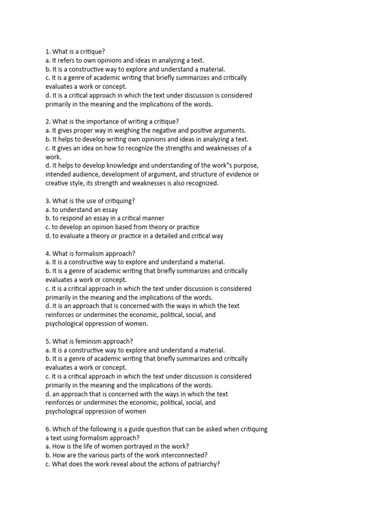 approach. Provide your own critique using the Reader-response and Marxist approach.