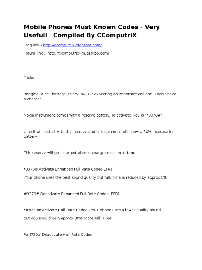 (3) *#4720# Activate Half Rate Codec - Your phone uses a lower quality sound but