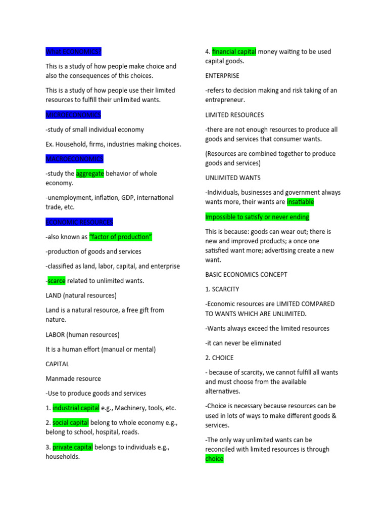 1. industrial capital e.g., Machinery, tools, etc. -Choice is necessary because resources can be