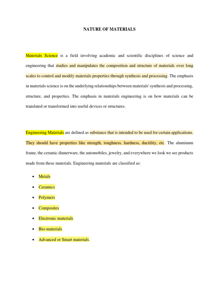 NATURE OF MATERIALS