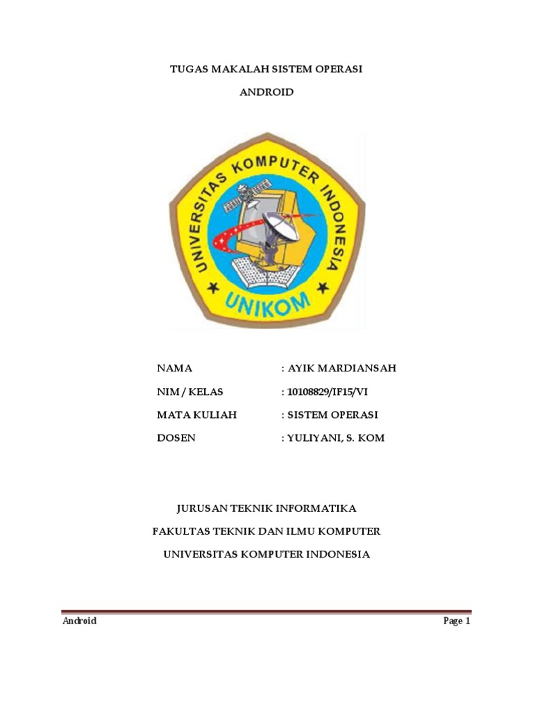 : AYIK MARDIANSAH : 10108829/IF15/VI : SISTEM OPERASI : YULIYANI, S. KOM