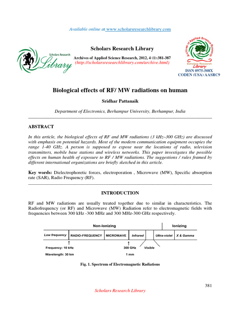 RF/MW radiations through the subsections like biological effects of RF and MW radiations,