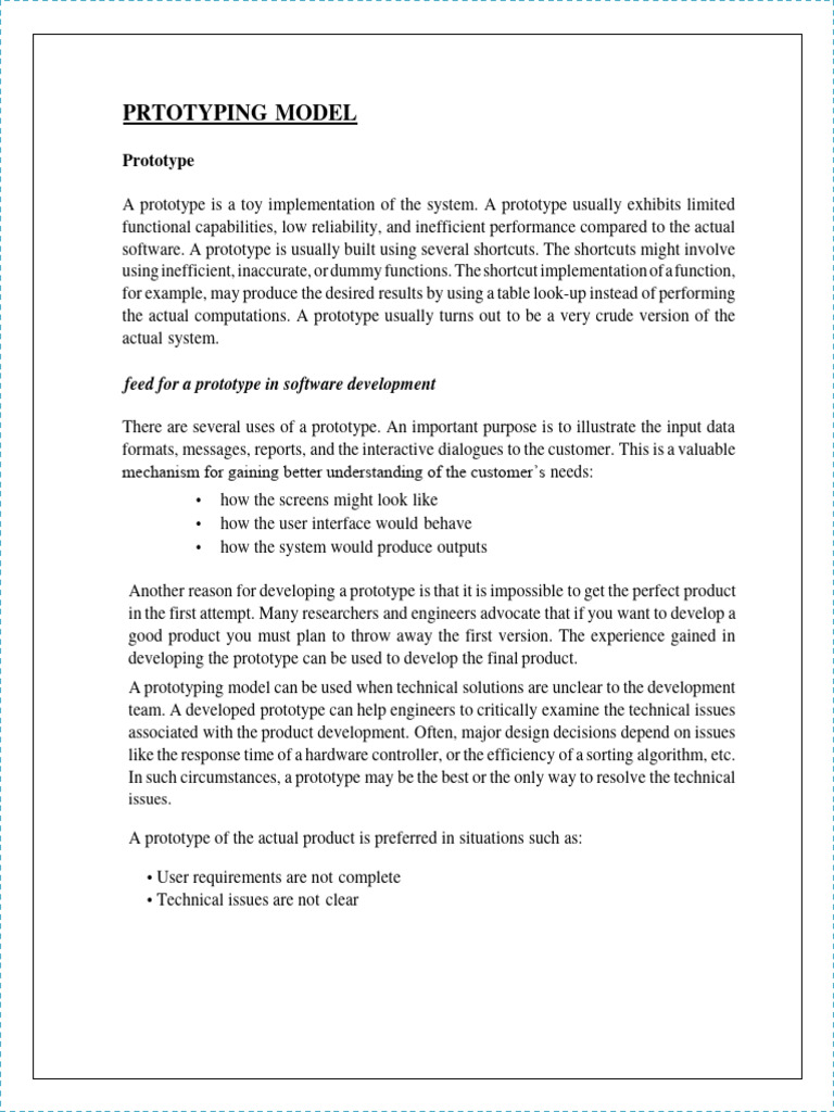 software. A prototype is usually built using several shortcuts. The shortcuts might involve
