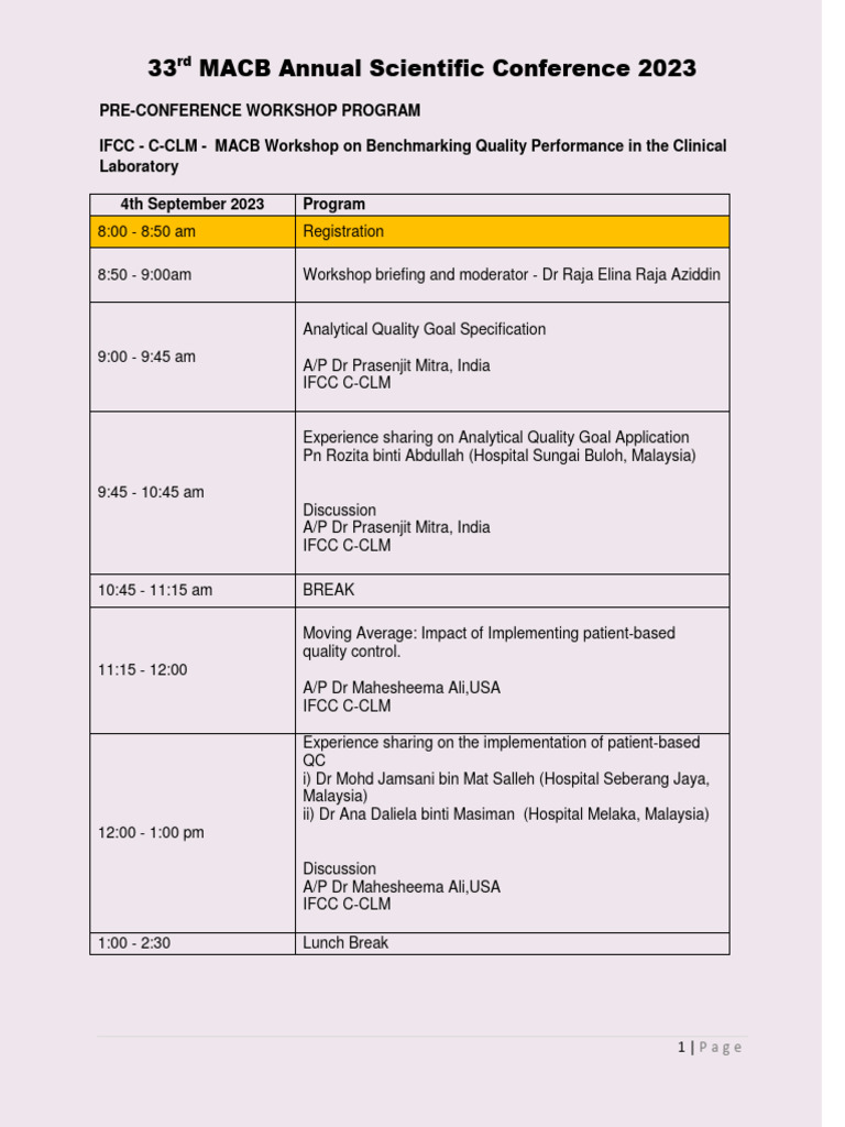 IFCC - C-CLM - MACB Workshop on Benchmarking Quality Performance in the Clinical