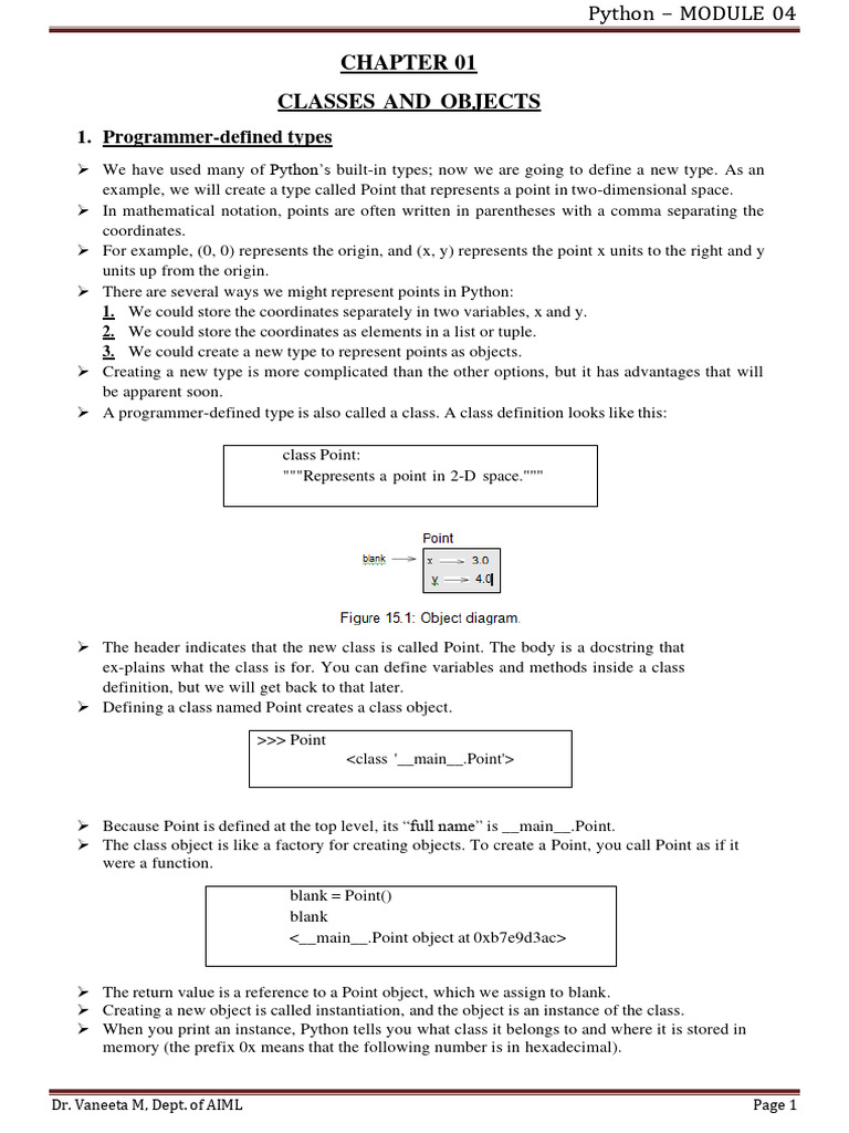 ➢ The class object is like a factory for creating objects. To create a Point, you call Point as if it