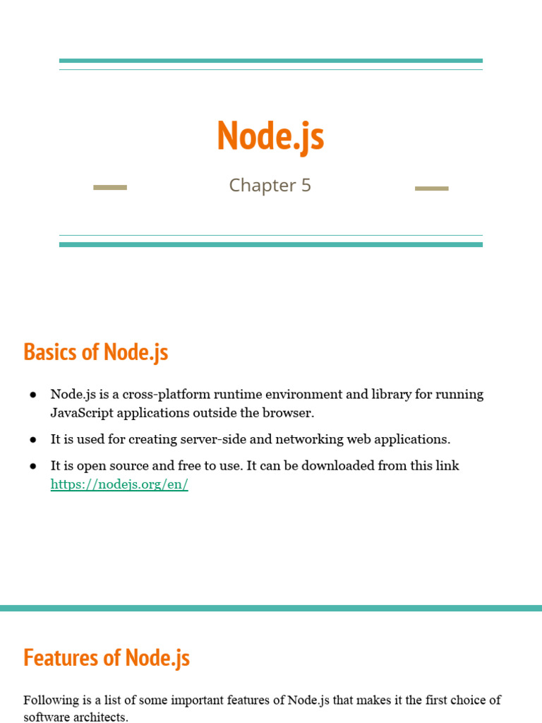 ● Extremely fast: Node.js is built on Google Chrome's V8 JavaScript Engine, so its