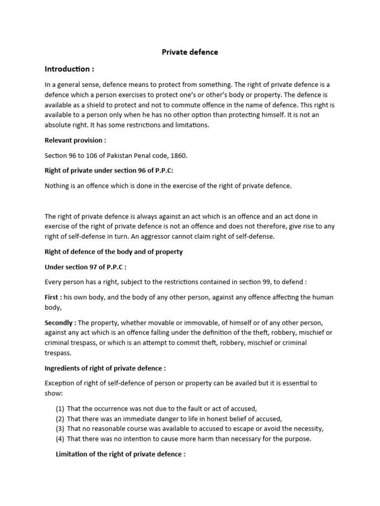Section 96 to 106 of Pakistan Penal code, 1860.