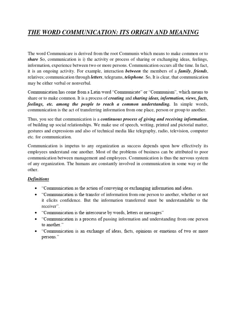 “Communication is an exchange of ideas, facts, opinions or emotions of two or more