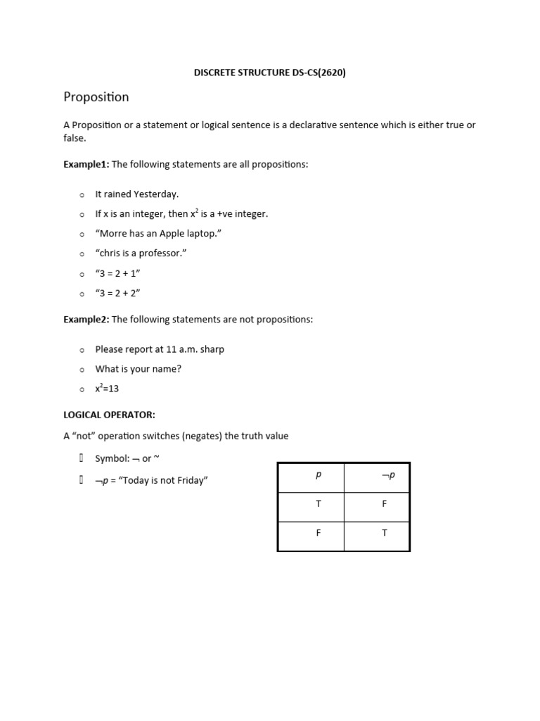 A Proposition or a statement or logical sentence is a declarative sentence which is either true or
