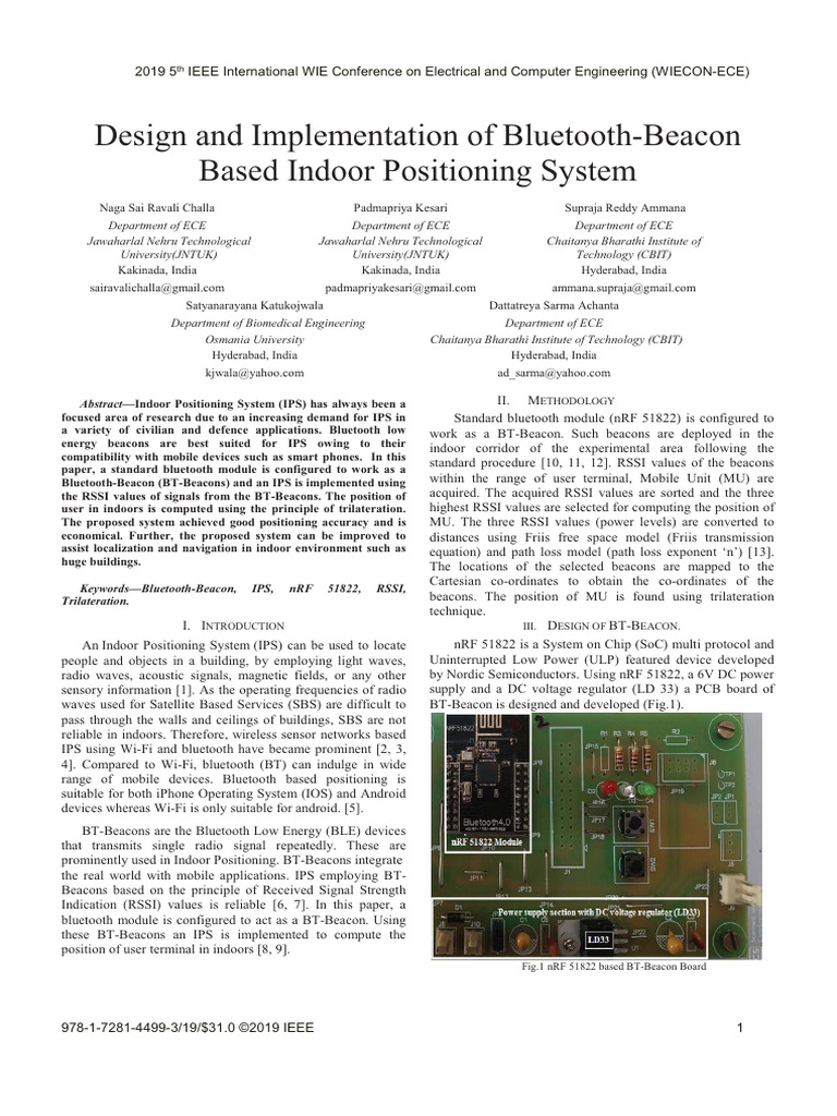 An Indoor Positioning System (IPS) can be used to locate nRF 51822 is a System on Chip (SoC) multi protocol and