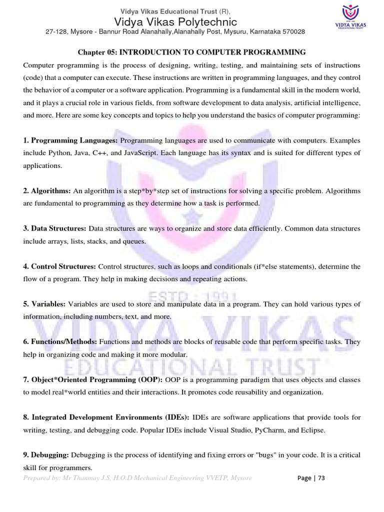 Chapter 05: INTRODUCTION TO COMPUTER PROGRAMMING